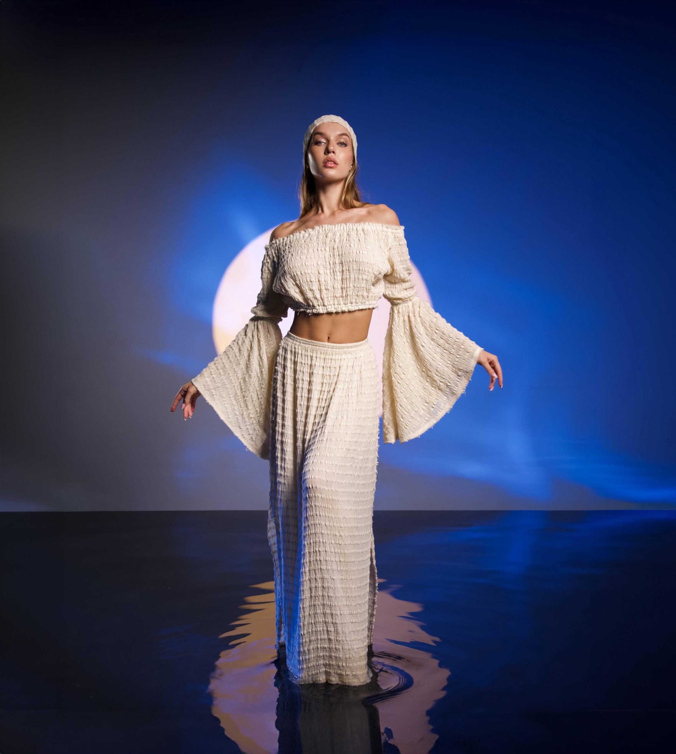 Elevate your boho style with the Zaria Off-Shoulder Blouse, a perfect blend of bohemian chic and effortless elegance. Made from specially handwoven cotton, this crop top features an off-shoulder design with natural elasticity and an elasticated waist and shoulders to provide a comfortable fit for sizes XS to L. The big fairy sleeves add a whimsical touch, creating a flowy, ethereal look that’s perfect for any occasion.