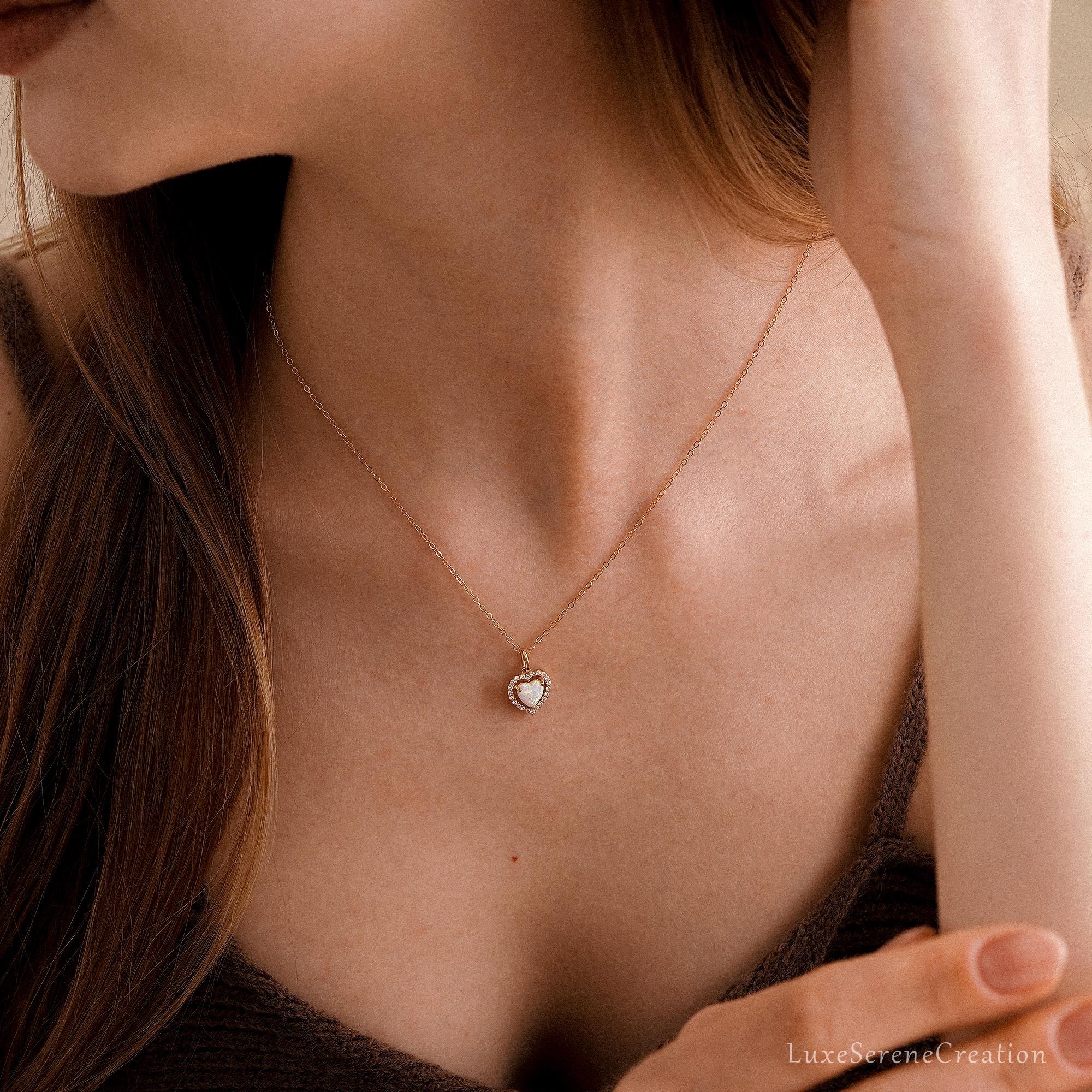 OpalDainty Opal Heart Necklace, Minimalist White Opal Necklace, Delicate Love Charm Necklace, Anniversary Gifts, Wedding Gifts, Bridal Gifts