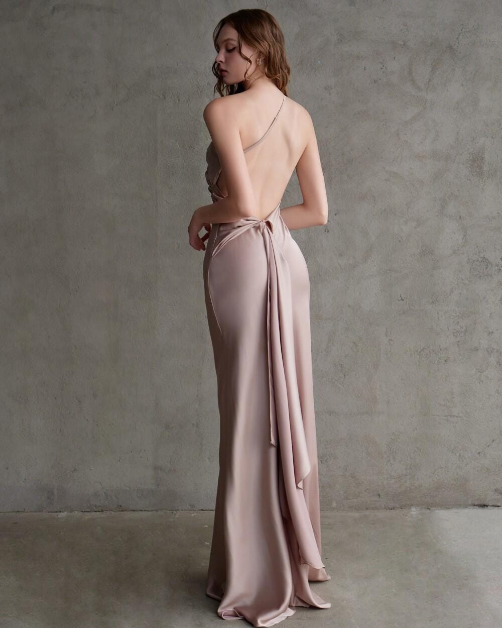 Be the first to review “Elegant One Shoulder Ruched Satin Gown For Wedding”