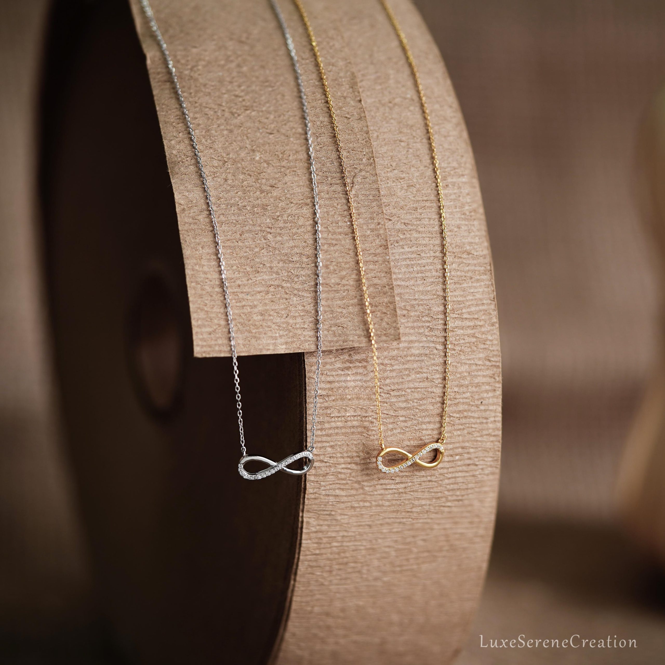 Sterling Silver Infinity Necklace, Pave Interlocking Charm Necklace, Diamond Infinite Love Necklace, Mother Necklace, Anniversary Gift for Her